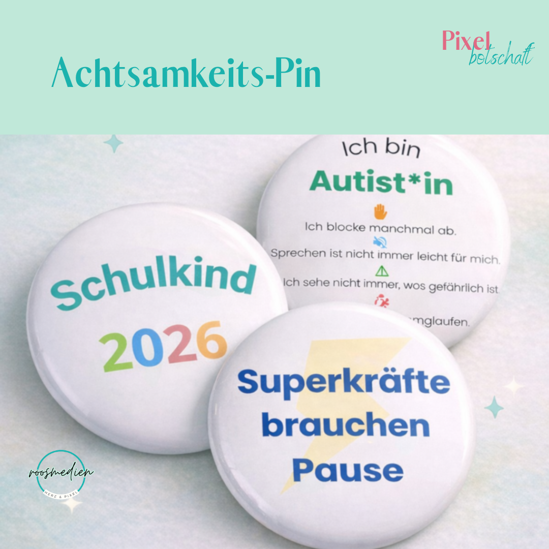 Ob Autismus-Aufkleber, Notfallpässe für Kinder oder bald auch liebevoll gestaltete Buttons – jedes einzelne Produkt soll unterstützen, aufklären und im Alltag ein kleines bisschen mehr Sicherheit, Verständnis und Achtsamkeit schenken.